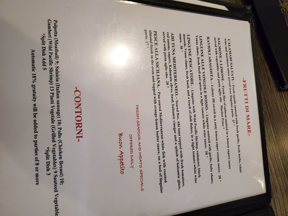 Fresh squid sauteed with fresh garlic, fresh herbs, white wine and marinara sauce served over linguini pasta.