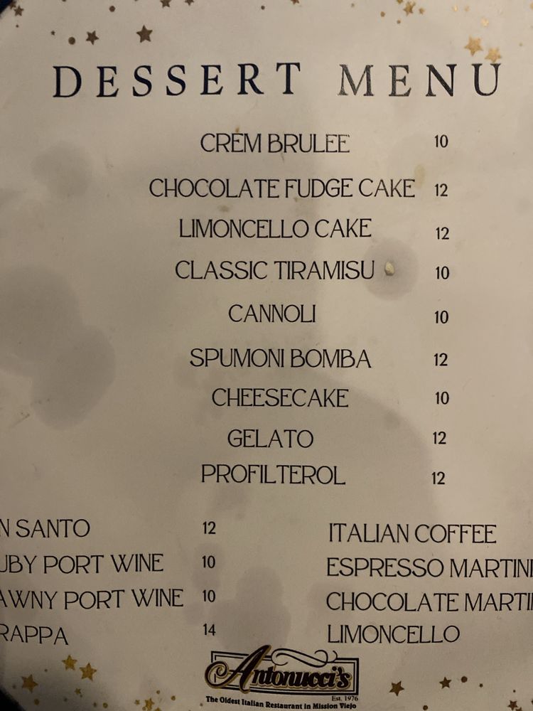 Antonucci’s Italian Cucina offers a delightful blend of Italian cuisine, pizza, and seafood in Mission Viejo, CA. With a wide range of options including savory crepes, sweet crepes, eggs and omelettes, and more, this restaurant caters to various preferences. The reviews from customers highlight the exceptional service and delicious dishes, such as the spaghetti with marinara sauce, meatballs and sausage, the Michelangelo pizza, chicken Parmesan, and tiramisu. The welcoming ambiance and friendly staff add to the overall dining experience, making it a recommended spot for gatherings or casual meals. The house-made tiramisu served as a surprise dessert further enhances the dining experience, showcasing Antonucci’s commitment to quality and customer satisfaction. Whether for special occasions or regular meals, Antonucci’s Italian Cucina promises a memorable and satisfying dining experience for all patrons.