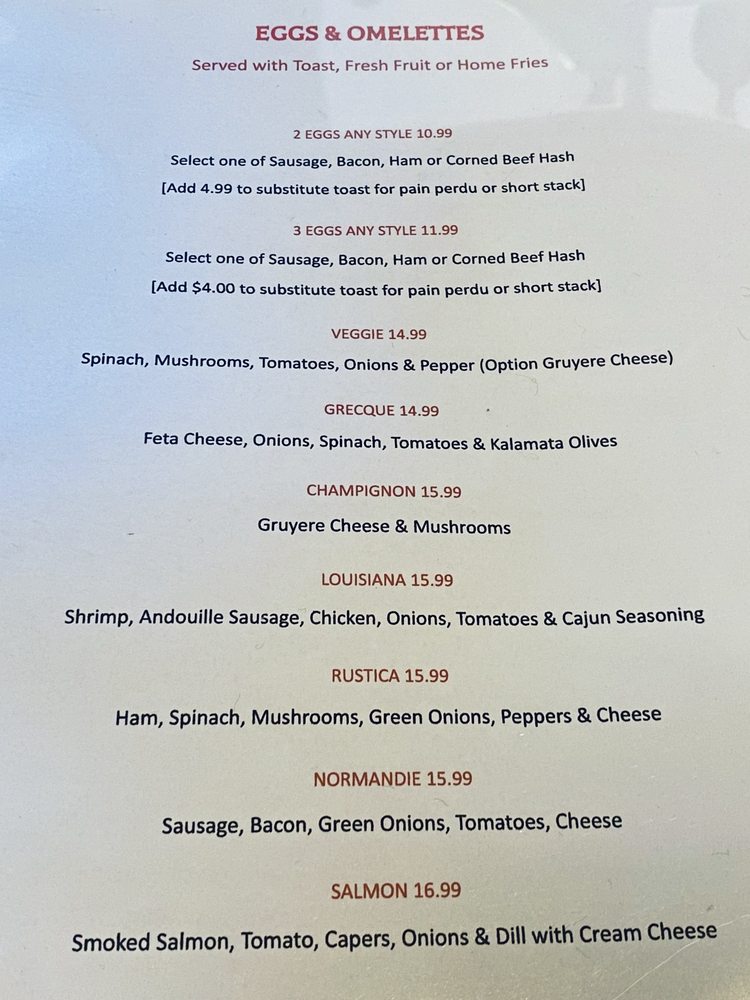 Comes with choice of meat. Substitute pain perdu or short stack for an additional charge.